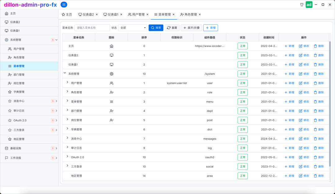 Dillon-Admin-Pro 是一个基于 Java 的权限管理系统桌面客户端项目,该项目实现了两套桌面客户端界面,分别采用 JavaFX 和 Java Swing 技术,并且也支持 Web 界面的使用。项目致力于提供一套完整、易于使用的权限管理系统 UI,适用于个人用户和企业用户。
