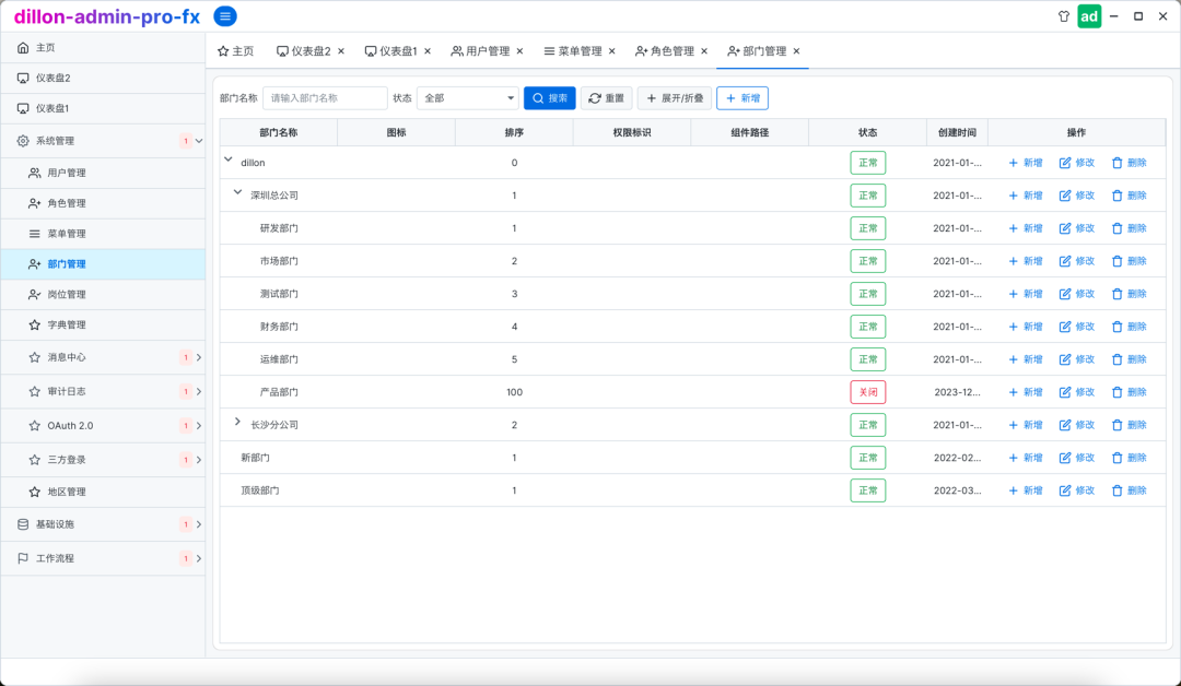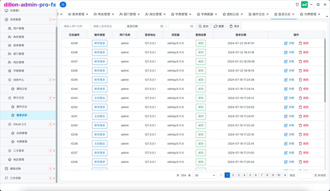 Dillon-Admin-Pro 适用于需要权限管理的各种应用场景,如企业内部管理系统、后台管理系统、CMS 内容管理系统等。通过该权限管理系统,可以方便地对用户进行权限控制,确保不同用户只能访问其权限范围内的资源和功能。