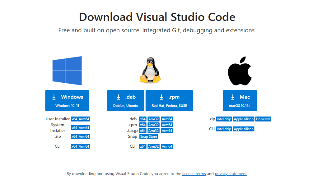 Visual Studio Code下载地址:https://code.visualstudio.com/Download