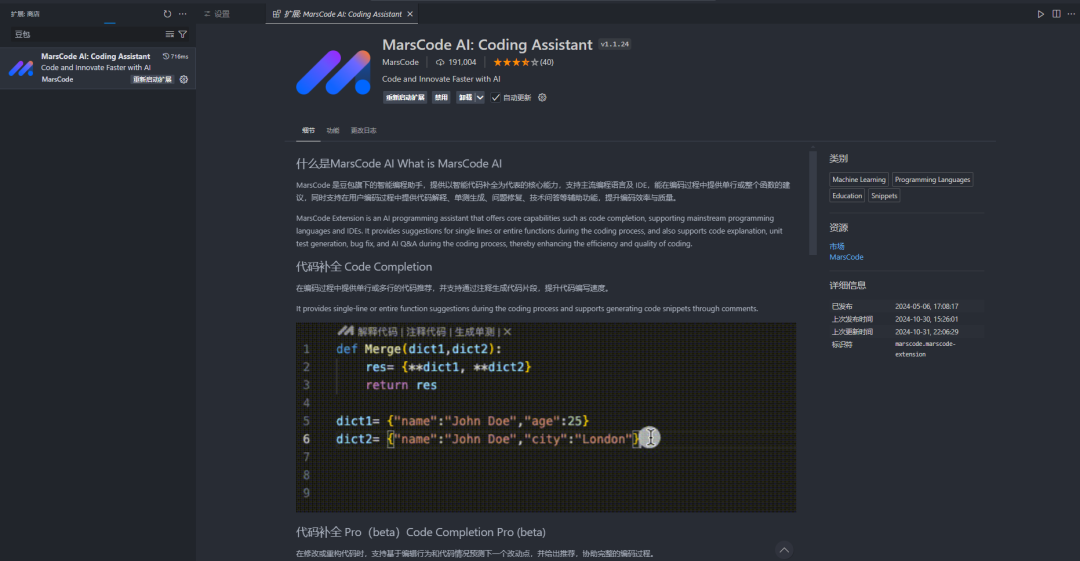 搜索 ”豆包“、”MarsCode“ 关键词,找到插件并安装。