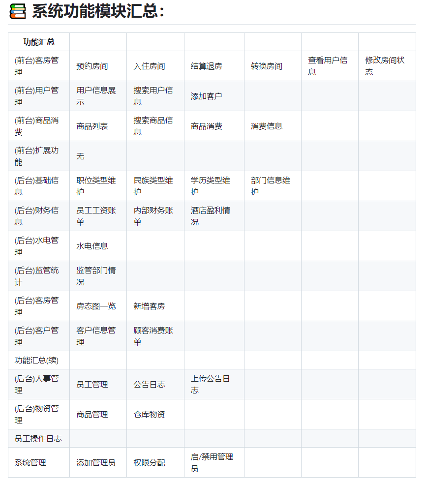 系统功能模块汇总