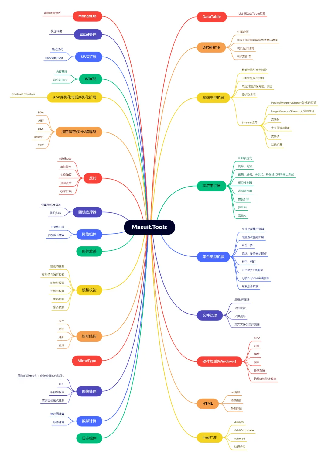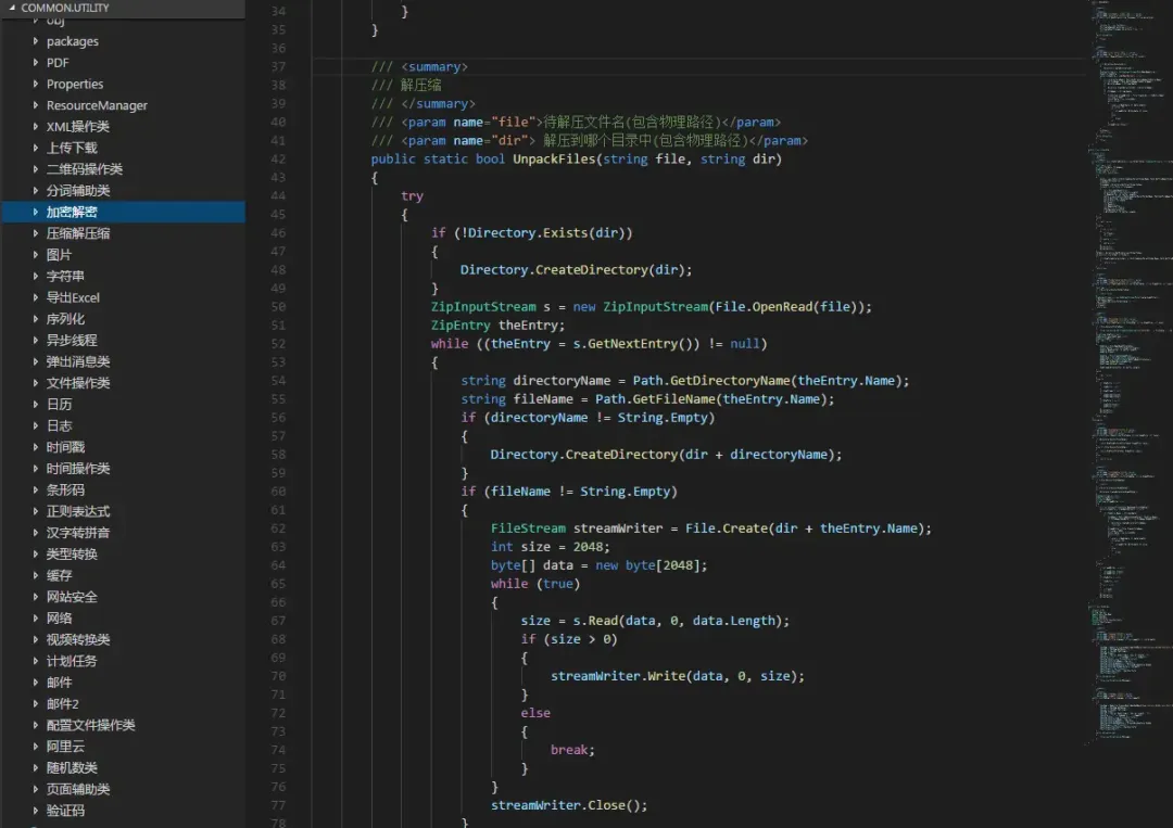 这个库包含一些常用的操作类,大都是静态类,加密解密,反射操作,树结构,文件探测,权重随机筛选算法,分布式短id,表达式树,linq扩展,文件压缩,多线程下载,硬件信息,字符串扩展方法,日期时间扩展操作,中国农历,大文件拷贝,图像裁剪,验证码,断点续传,集合扩展、Excel导出等常用封装。