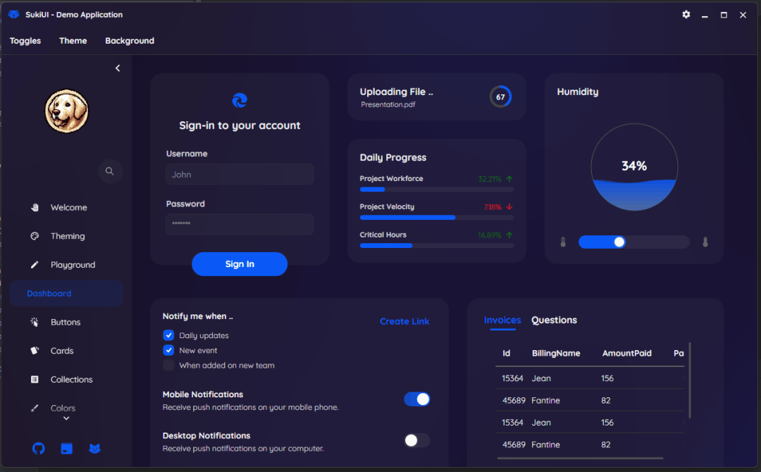 SukiUI 是一个为 AvaloniaUI 设计的桌面用户界面(UI)库,它提供了丰富的功能和定制选项,旨在帮助开发者高效构建美观且功能强大的桌面应用程序。