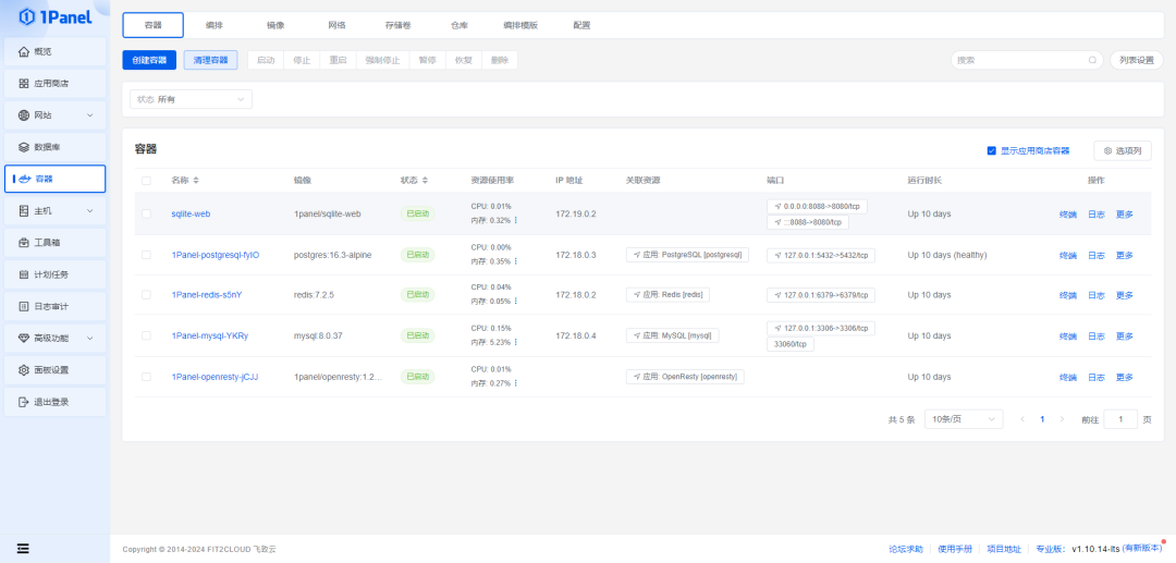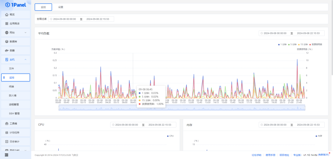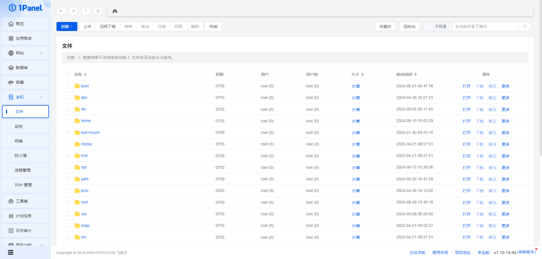 • 高效管理:用户可以通过 Web 界面轻松管理 Linux 服务器,如主机监控、文件管理、数据库管理、容器管理等;