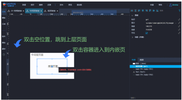 页面嵌套:支持无限级页面嵌套,用户可以将多个页面组合、嵌套在一起,实现复杂的功能布局。 -