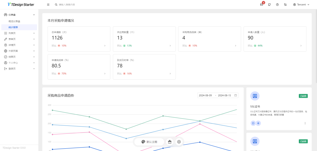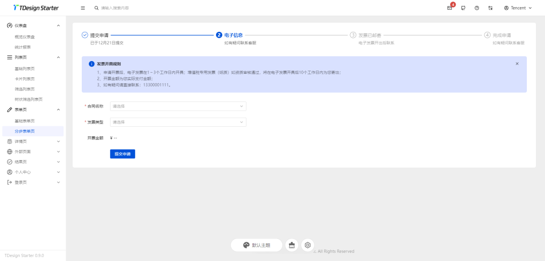 TDesign Vue Next Starter 是一个基于 TDesign,使用 Vue3、Vite、Pinia、TypeScript 开发,可进行个性化主题配置,旨在提供项目开箱即用的、配置式的中后台项目。