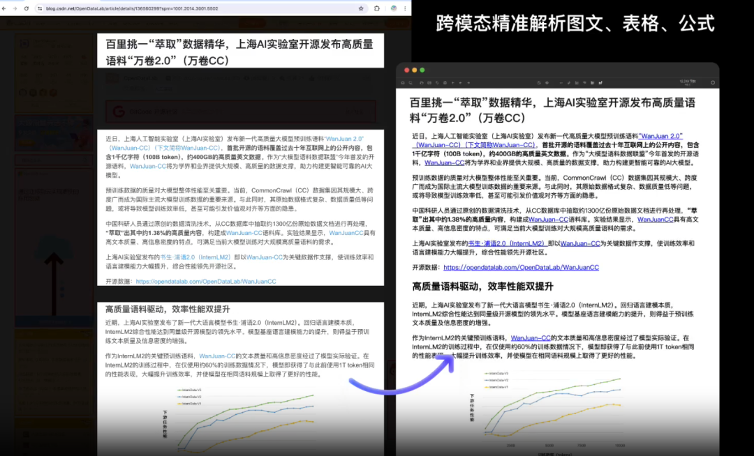 跨模态解析:精确解析文本、图像、表格和公式信息。 -