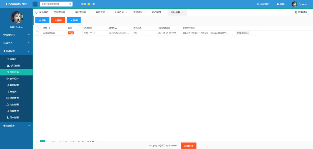 定时任务:基于Quartz.Net的定时任务控制,支持Cron表达式配置。