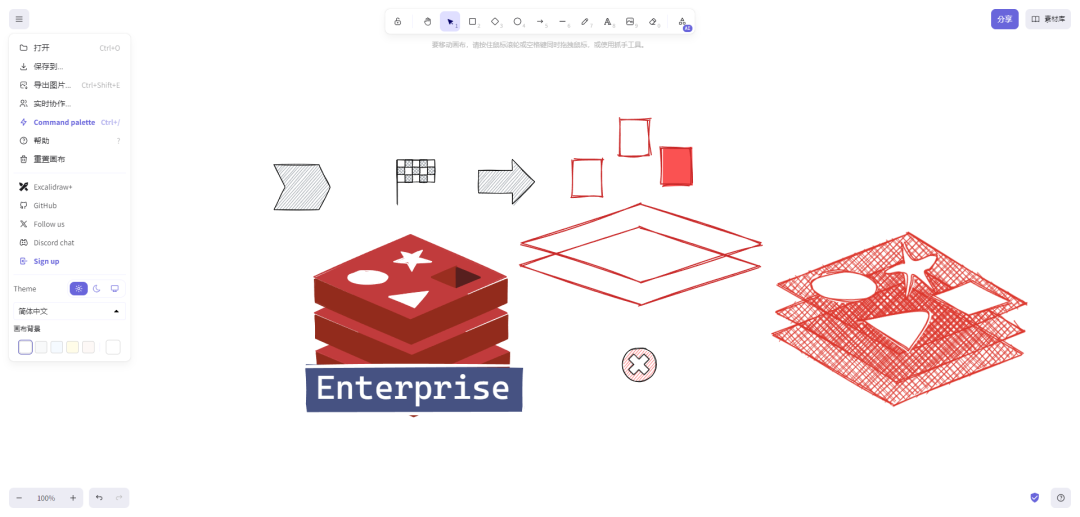 • 在线使用地址:https://excalidraw.com/