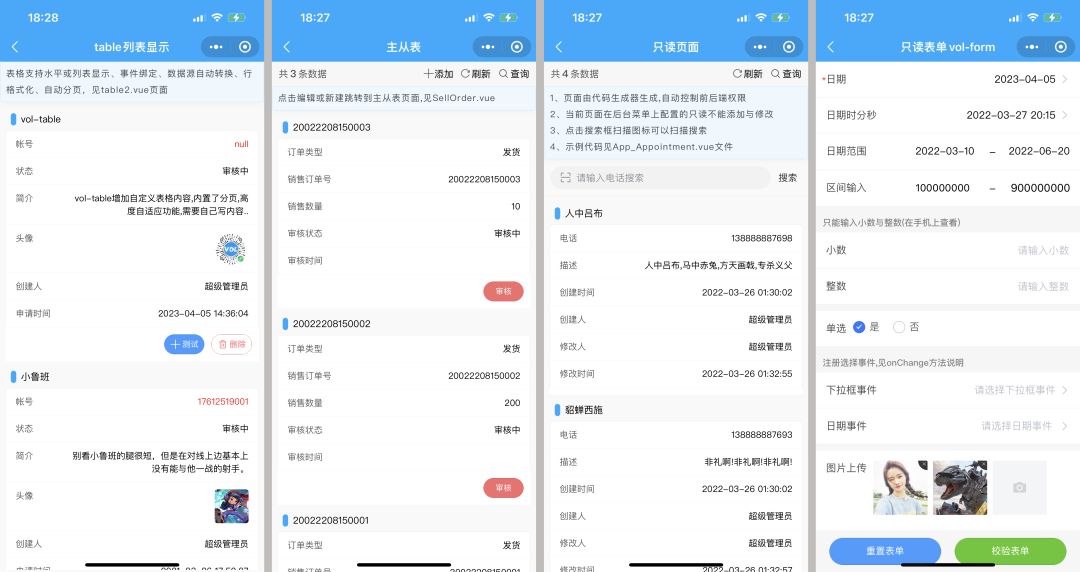 快速开发:基础功能全部由代码生成器生成,支持前端和后台的自定义业务代码扩展。 -