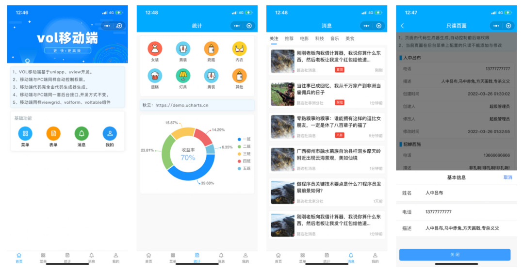 移动端开发:支持H5、全H5开发以及通过uniapp进行小程序开发。
