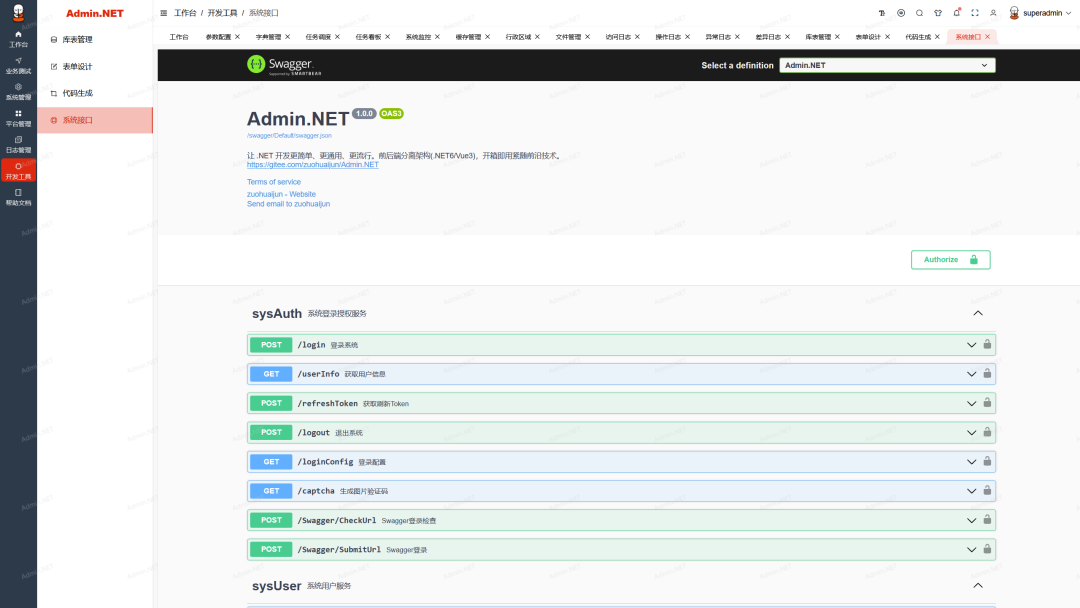 Admin.NET集成多租户、缓存、数据校验、鉴权、事件总线、动态API、通讯、远程请求、任务调度、gRPC等众多黑科技。代码简洁、易扩展,让开发更简单、更通用。