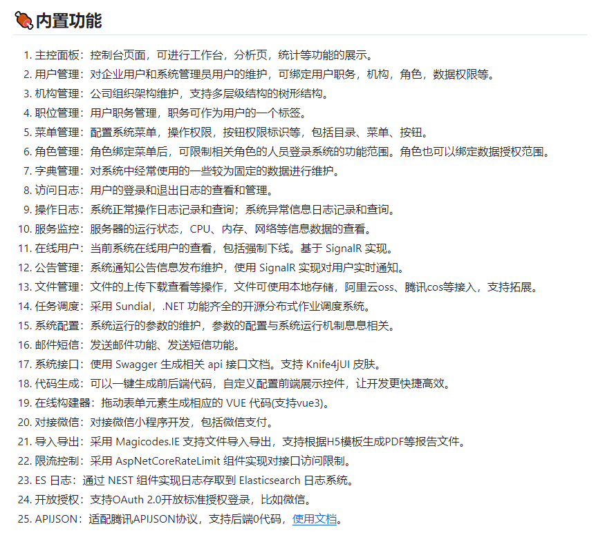 这是一个集成了用户管理、机构管理、角色权限管理、日志管理、服务监控、文件管理、任务调度、系统配置等多种功能的管理平台。它支持用户权限管理、实时通知、文件操作、任务调度、微信对接等特性,旨在提升企业管理效率和开发效率。