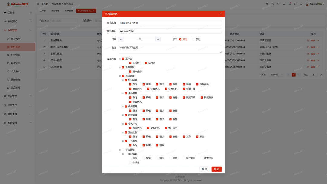 Admin.NET是一个基于.NET 6/8 (Furion/SqlSugar) 实现的、(MIT License)的通用权限开发框架,前端采用 Vue3/Element-plus,代码简洁、易扩展。整合最新技术,模块插件式开发,前后端分离,开箱即用。