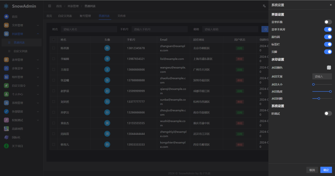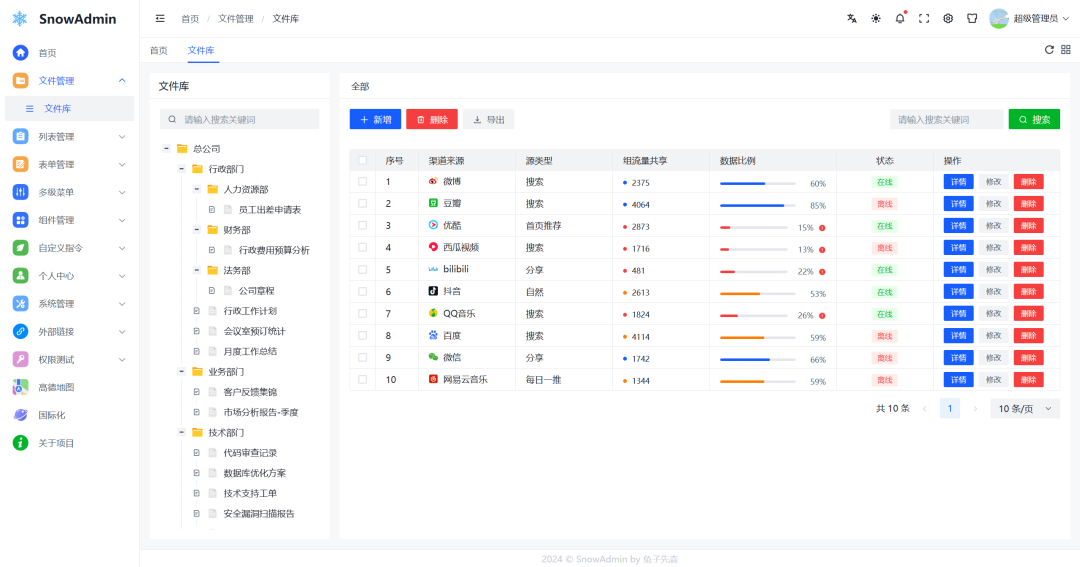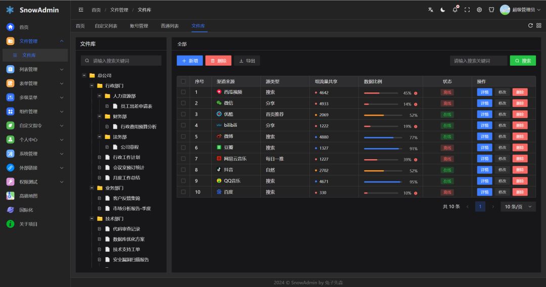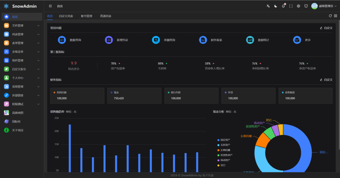 通过 SnowAdmin,开发者可以快速搭建出功能完善、界面美观的后台管理系统,提高开发效率和管理便捷性。