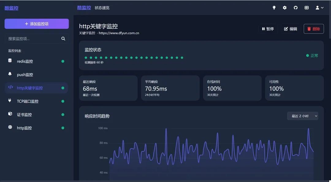 • 网站/接口监控: 检查HTTP/HTTPS服务的可用性、响应时间及关键词匹配。