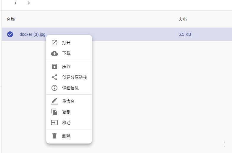 可以对上传的文件进行打开,下载,压缩,分享等相关管理操作