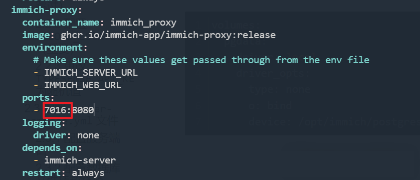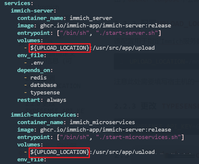 该配置用于指定Immich服务数据存储挂载的目录,也就是用户上传的照片具体保存在宿主机哪个目录下: