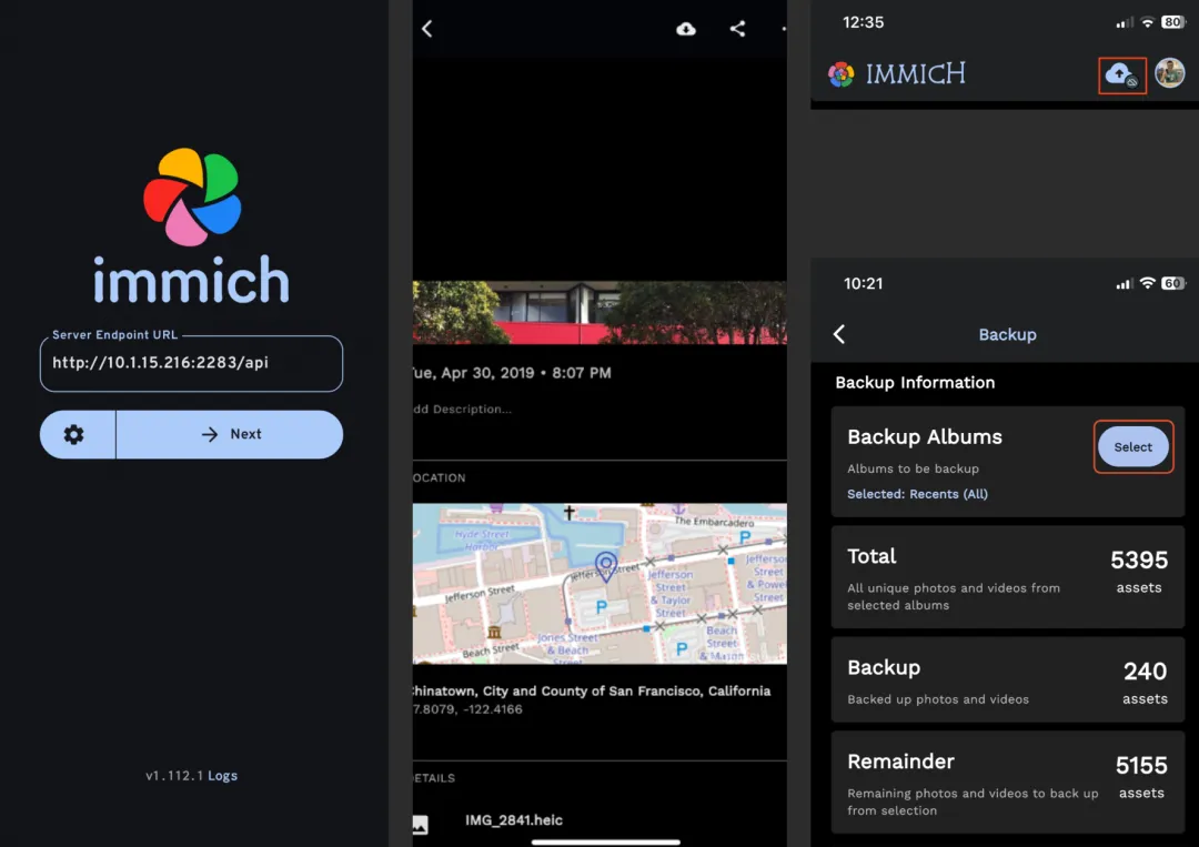 • 自动备份: 打开 immich 时自动备份你的照片和视频,还可以选择特定相册进行备份;