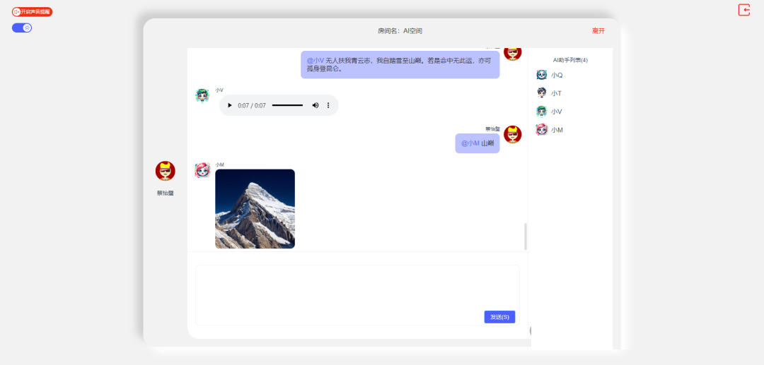 • 多模态交互: 支持文本、图片、文件、音视频传输。