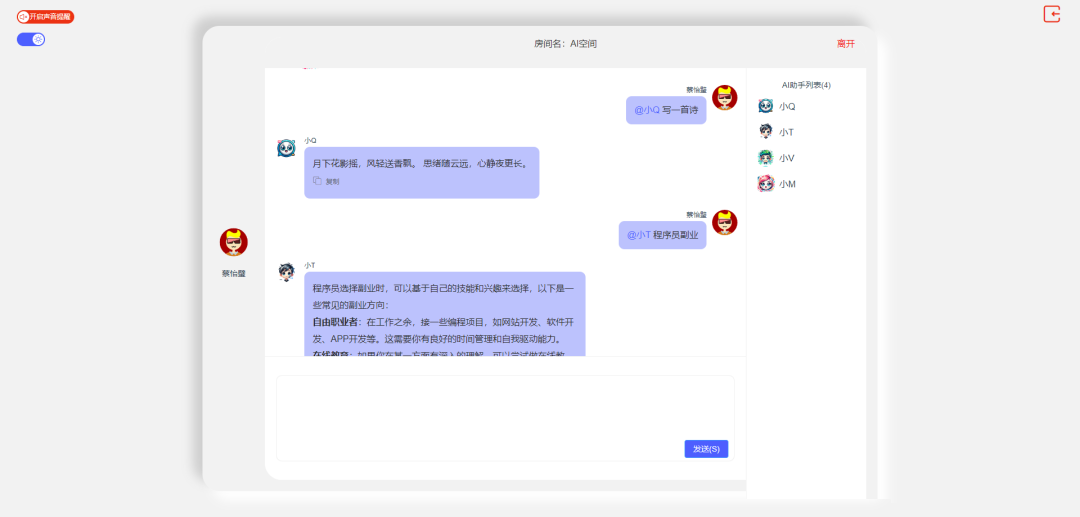 • 匿名性: 用户无需注册即可加入聊天室,保护隐私。