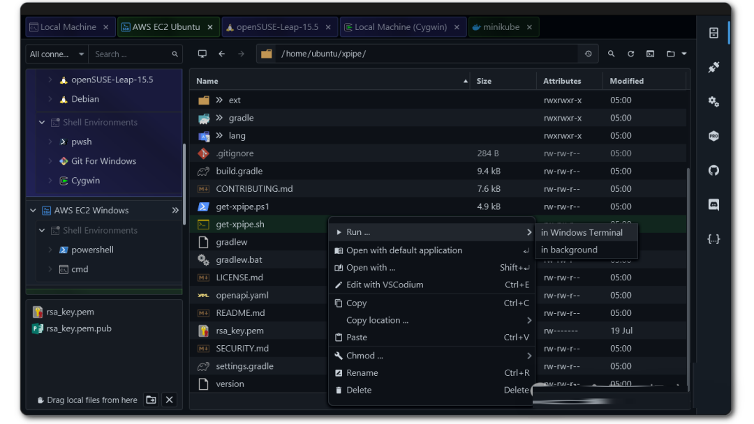 API 控制: 通过 HTTP 接口提供对 XPipe 功能的编程访问,支持自定义编程语言管理远程系统。