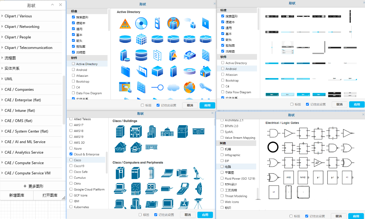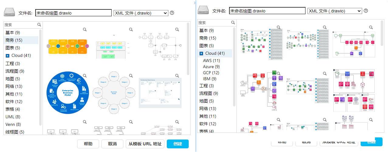 丰富模板库: 内置流程图、架构图等大量预设模板,可直接使用; -