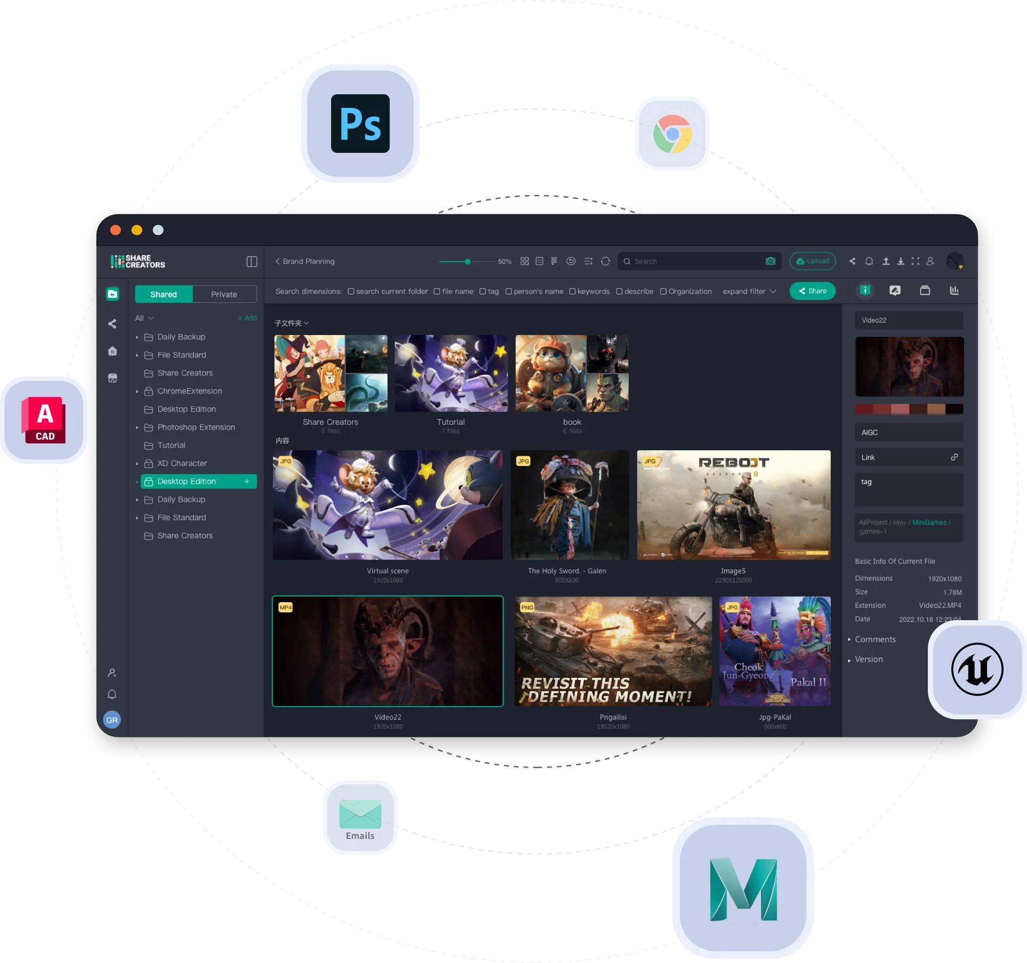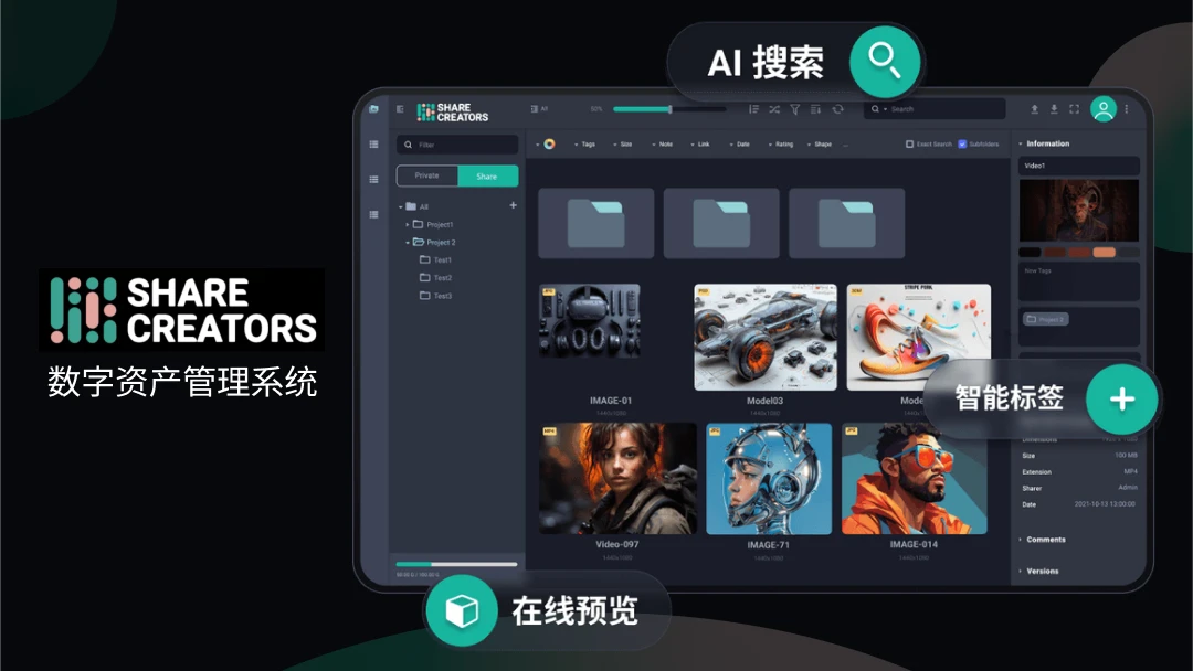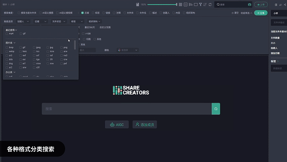 除了 AI 搜索和文件预览,ShareCreators 的资产库还包含以下功能:
