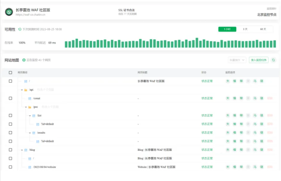 交互界面简洁直观、操作上手轻松、注重用户体验,实时监测每个页面的状态和详细信息,让你对网站运行状态了如指掌。