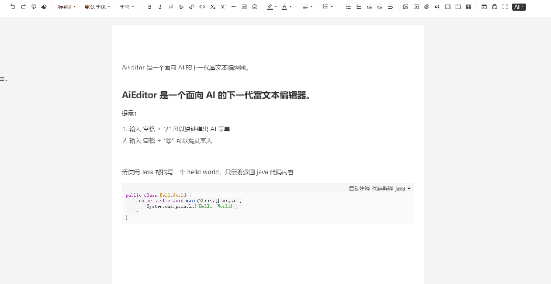 AiEditor 是一个面向 AI 的下一代富文本编辑器。开箱即用、支持所有前端框架、支持 Markdown 书写模式