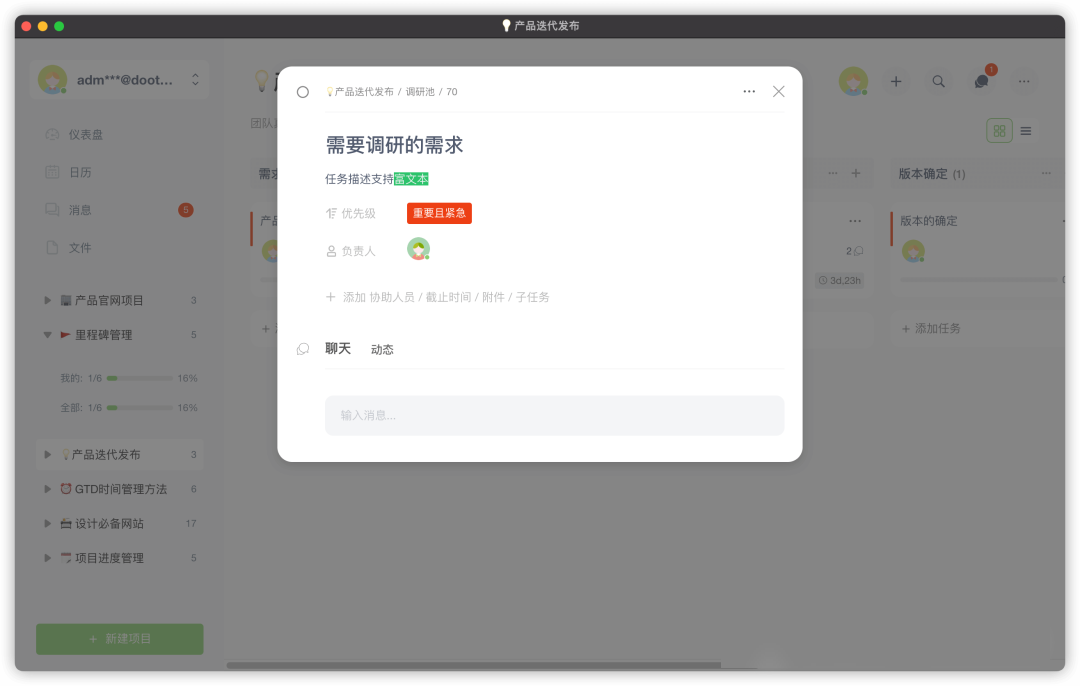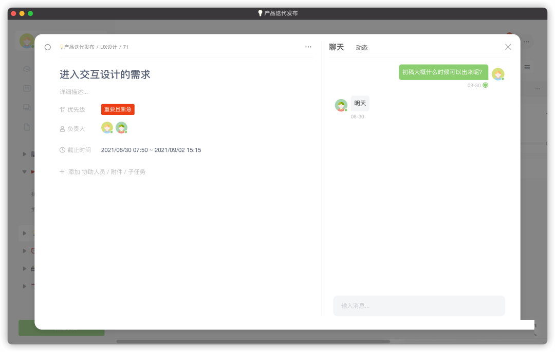 任务协同: 以任务化的方式让团队的工作井井有条,保证团队协作的高效性和任务分工的明确性。 -
