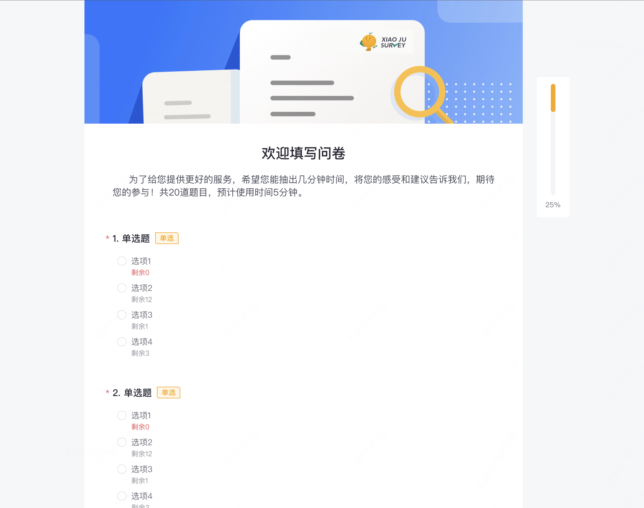 多类型数据采集,轻松创建调研表单:文本输入、数据选择、评分、投票、文件上传等。 -