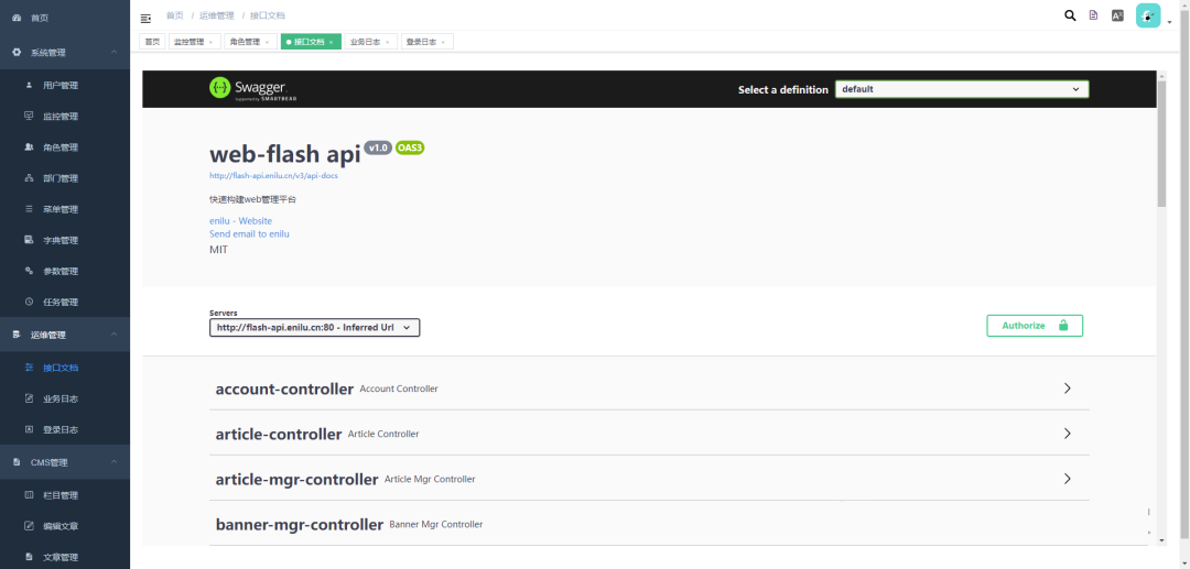 cms内容管理,配合flash-vue-h5提供了手机端内容展示系统 -