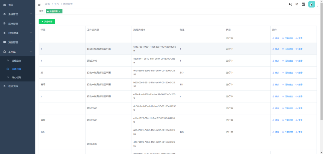 工作流:流程定义,发起申请,待办任务 -