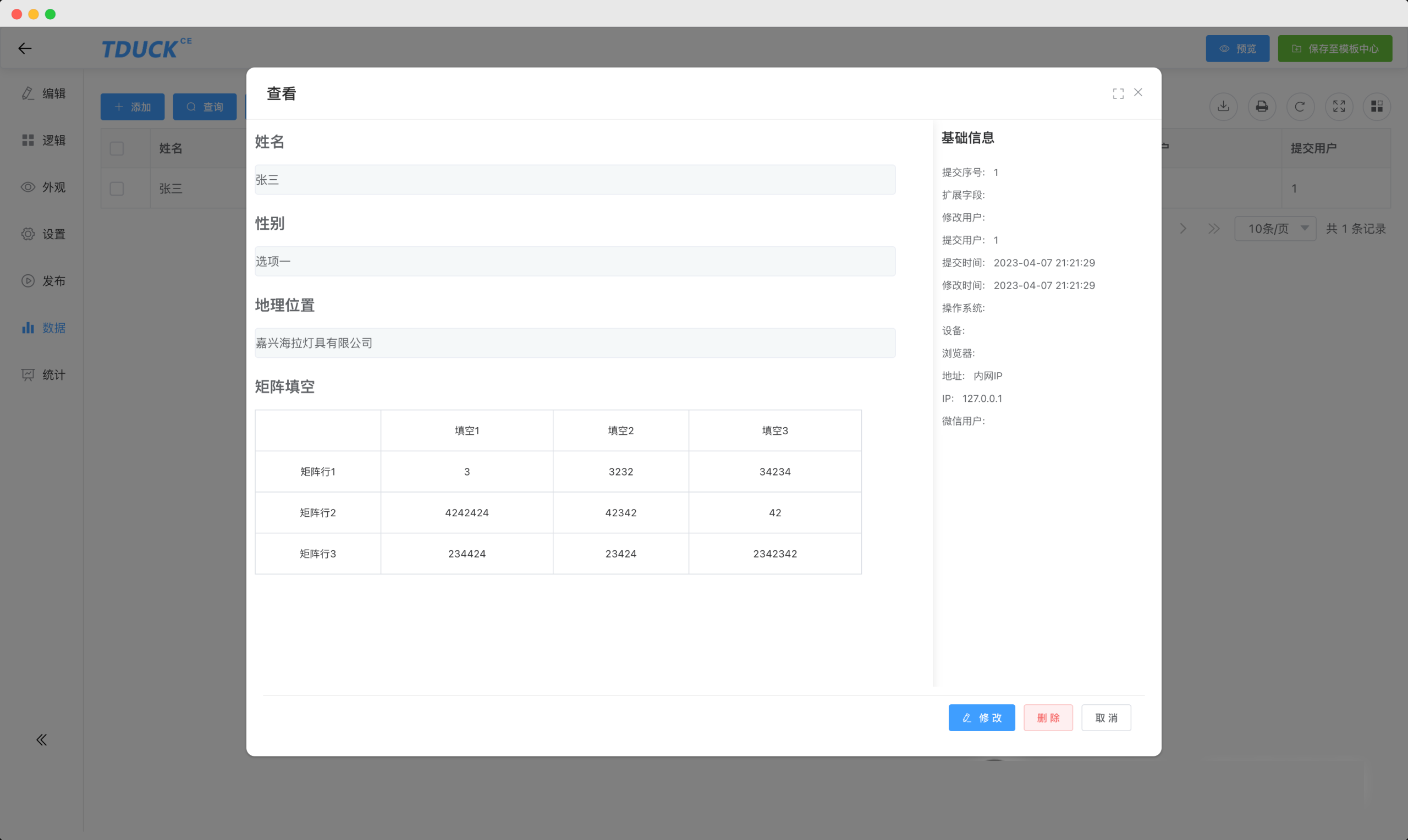 表单数据,支持数据新增、编辑、导出、打印、预览和打包下载附件。 -