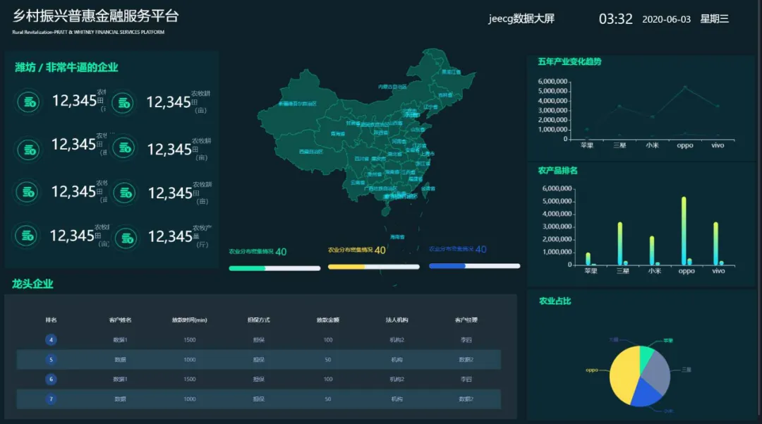 大屏设计器支持几十种图表样式,可自由拼接、组合,设计炫酷大屏; -