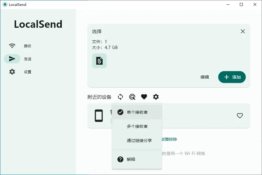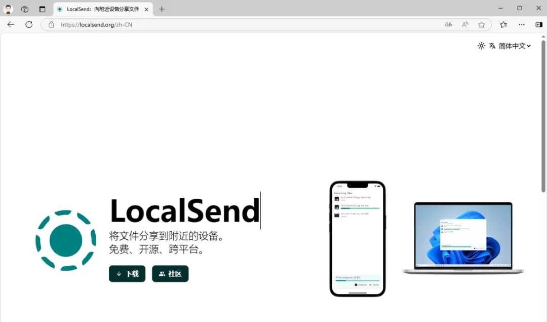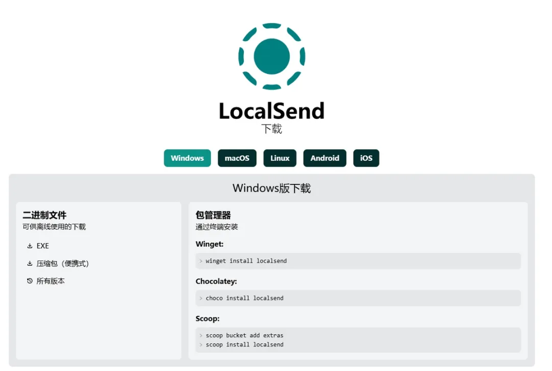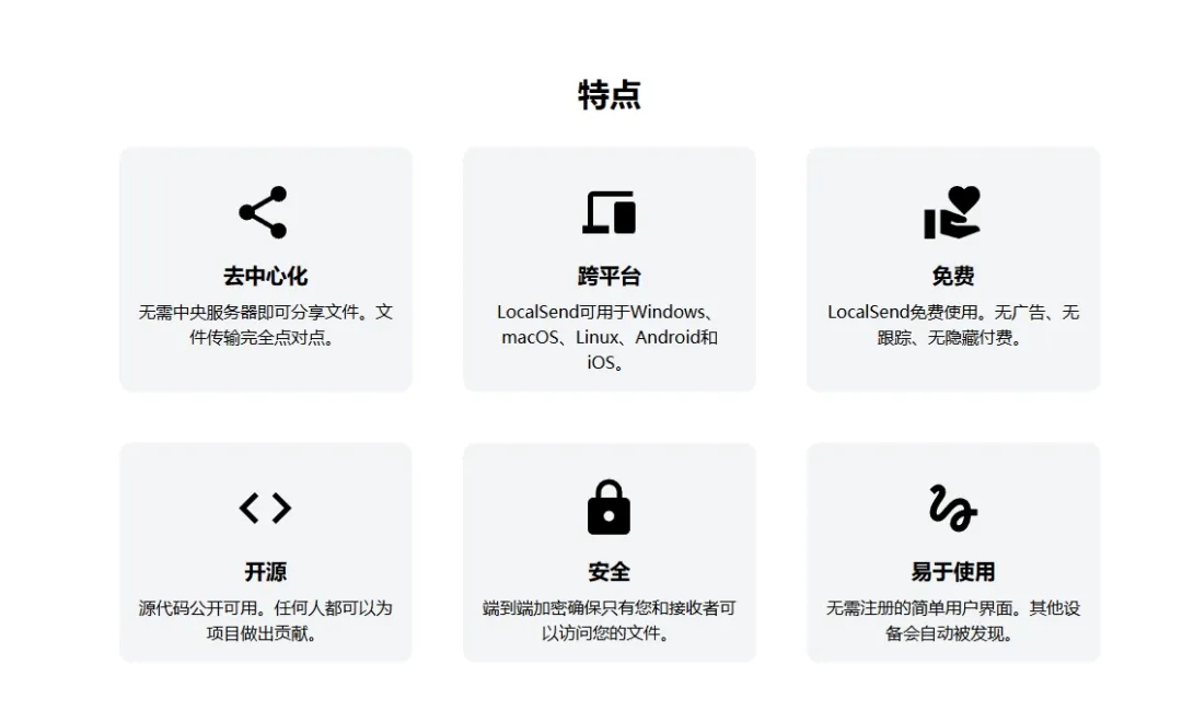 上图这个软件大家有没有用过?LocalSend,一款局域网传输软件。