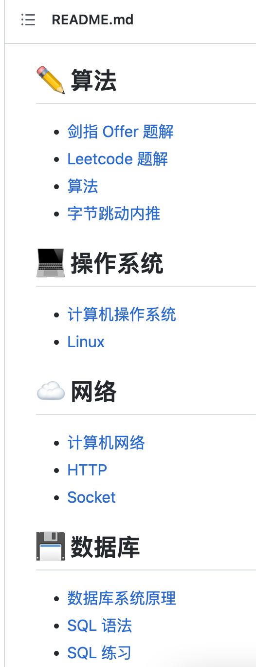 这个项目 177K 的 Star!包含了技术面试必备的基础知识,内容浅显易懂,你不需要花很长的时间去阅读和理解成堆的技术书籍就可以快速掌握这些知识,从而节省宝贵的面试复习时间。