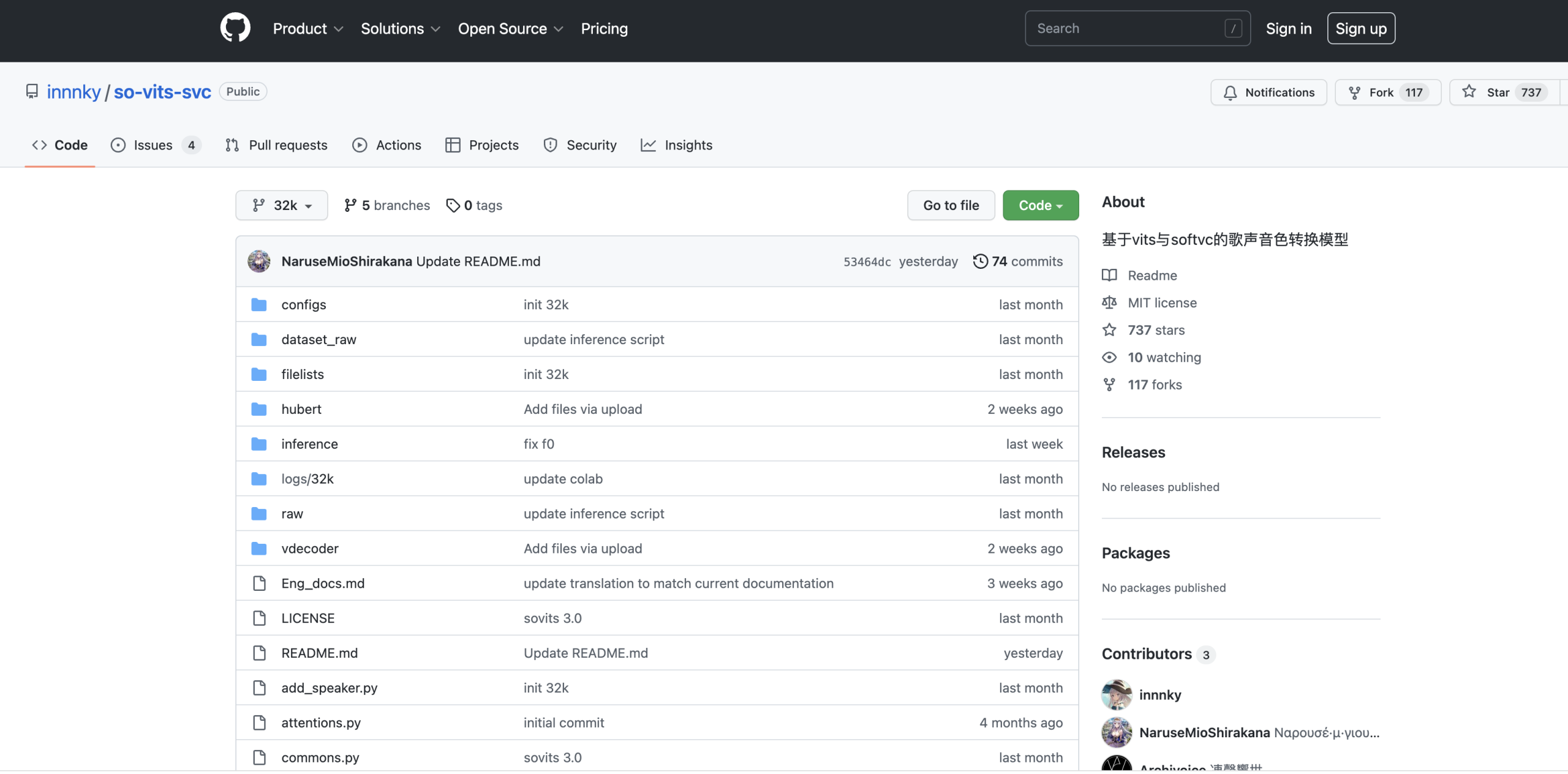 歌声音色转换模型,通过 SoftVC 内容编码器提取源音频语音特征,与 F0 同时输入 VITS 替换原本的文本输入达到歌声转换的效果。