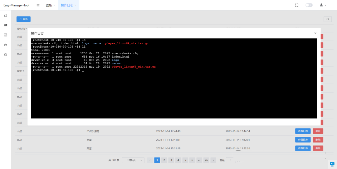 操作日志: 对SSH操作进行记录,可以查看到真个操作过程的命令和结果,进行审计 -