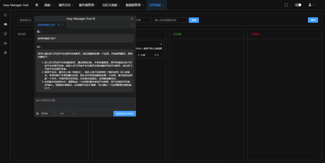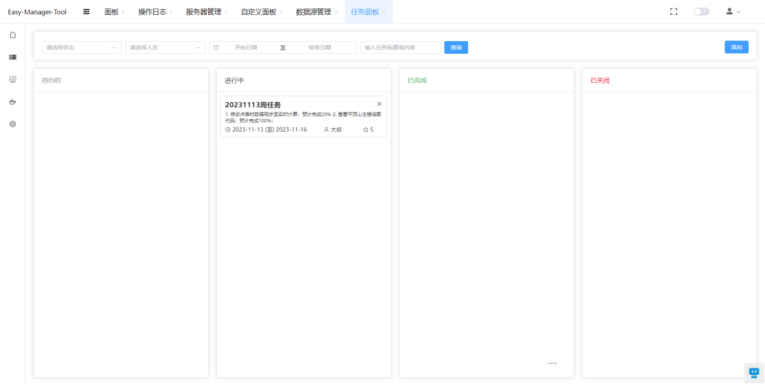 Easy-Manager-Tool 的诞生是为了解决软件行业众多参与者使用种类繁多的工具问题,想象做为一个后端开发者,尤其是中小型公司的开发者,您可能不止需要会idea为您写业务代码。