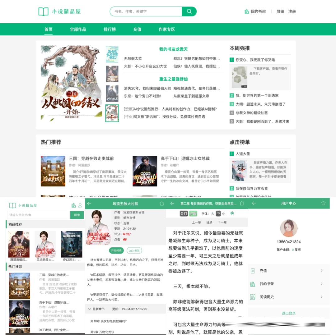 novel-plus 是一个多端(PC、WAP)阅读,功能完善的原创文学 CMS 系统。由前台门户系统、作家后台管理系统、平台后台管理系统和爬虫管理系统等多个子系统构成,包括小说推荐、作品检索、小说排行、小说阅读、小说评论、会员中心、作家专区等功能,支持自定义多模版、可拓展的多种小说内容存储方式(内置数据库分表存储和 TXT 文本存储)、阅读主题切换、多爬虫源自动采集和更新数据、会员充值、订阅模式、新闻发布和实时统计报表。