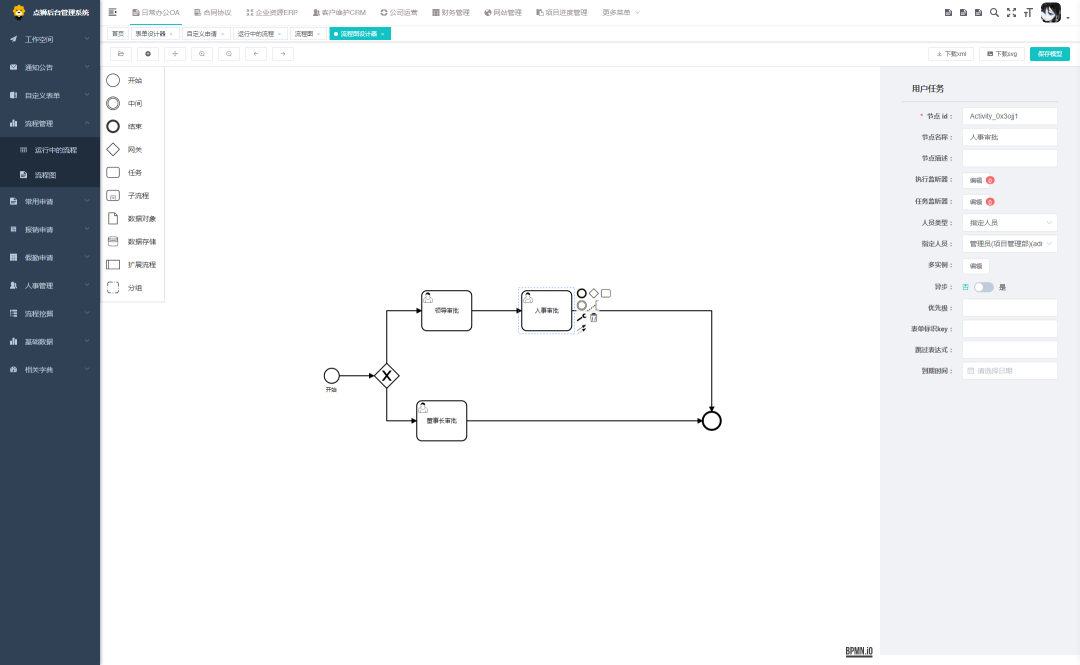 • 扩展了流程设计器,可以手动设置指定任务的办理人,以及指定岗位办理,流程设计更加方便。