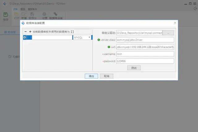 选择本地的一个数据库驱动,填写数据库地址、数据库端口、数据库名以及密码