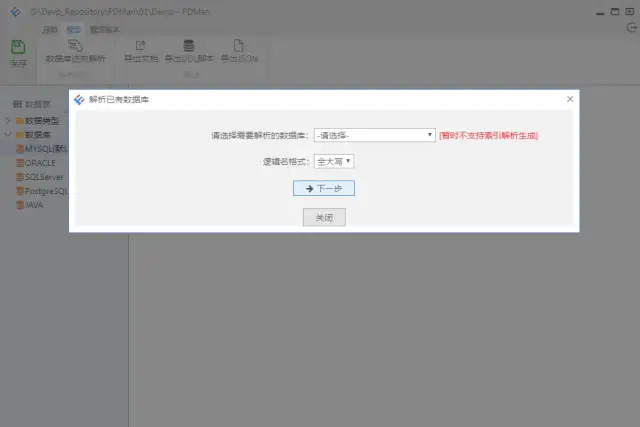 PDMan 使用的 JSON 文件,这里我连接本地 MySQL。