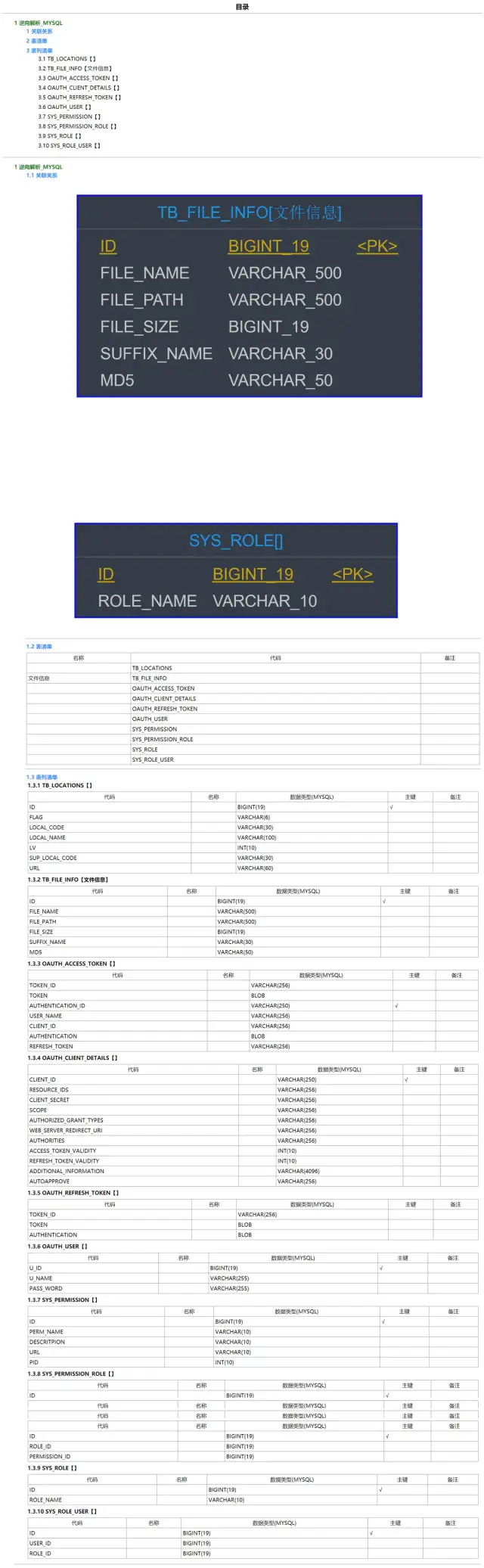 文档可以导出 HTML、 WORD、MARKDOWN 三种格式,文档内容包括各个表的字段属性,数据表间的关系图。