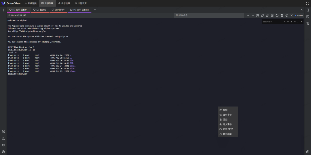 文件管理: 支持远程主机 SFTP 大文件的批量上传、下载和在线编辑等操作。 -