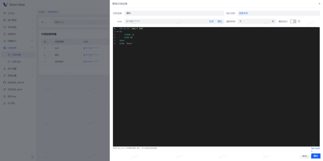计划任务: 支持配置 cron 表达式,定时执行主机命令。 -