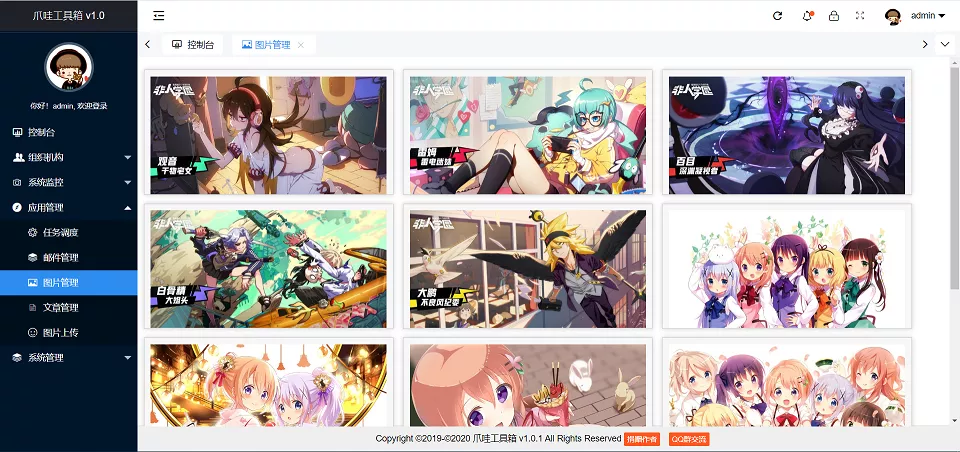 • 应用管理:任务调度、邮件管理、图片管理、文章管理、打卡任务、数据查询、人工智能,每个模块只需要你稍作修改就可以打造成一个项目了。