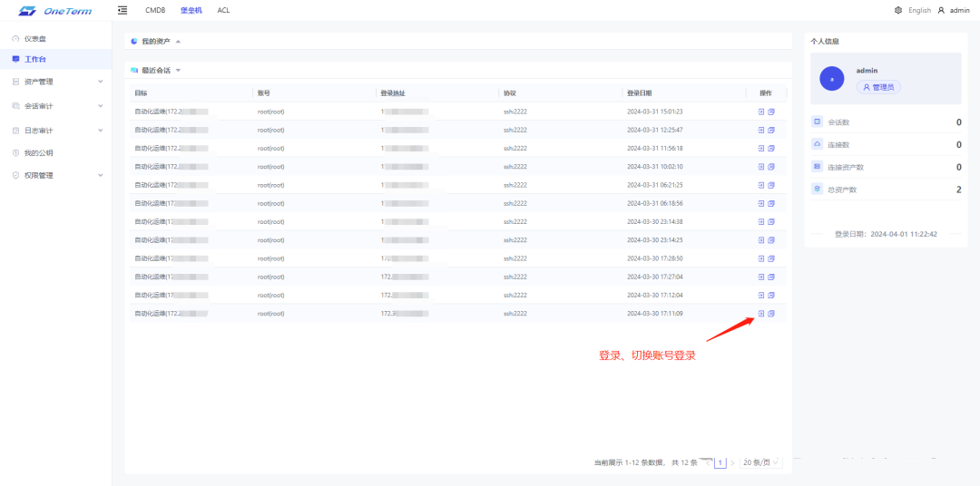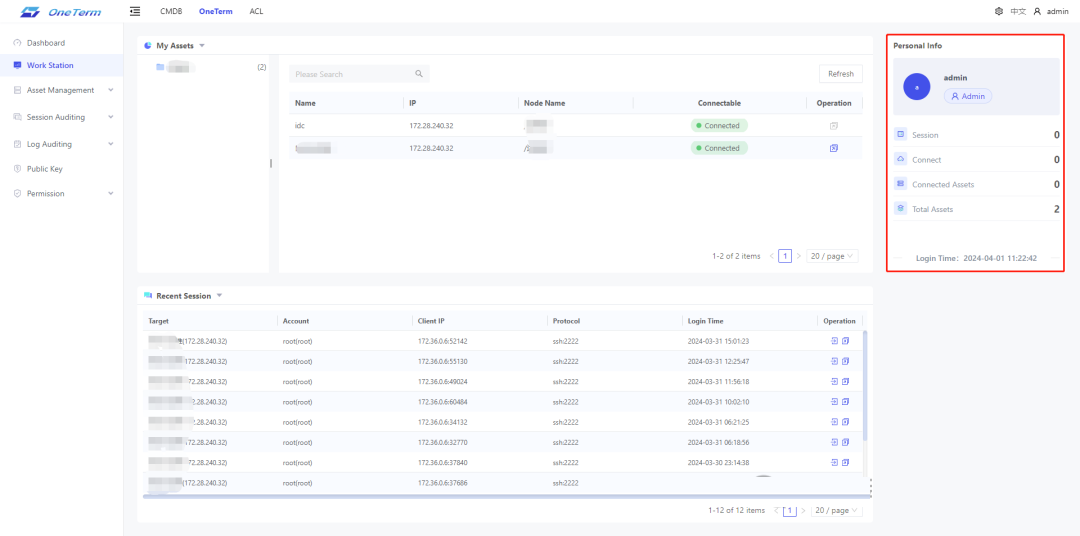 • 安全审计: OneTerm可以记录用户的登录和活动,提供审计日志,以便在发生安全事件时进行调查。这有助于确保每个用户的行为都是可追踪和可审计的。